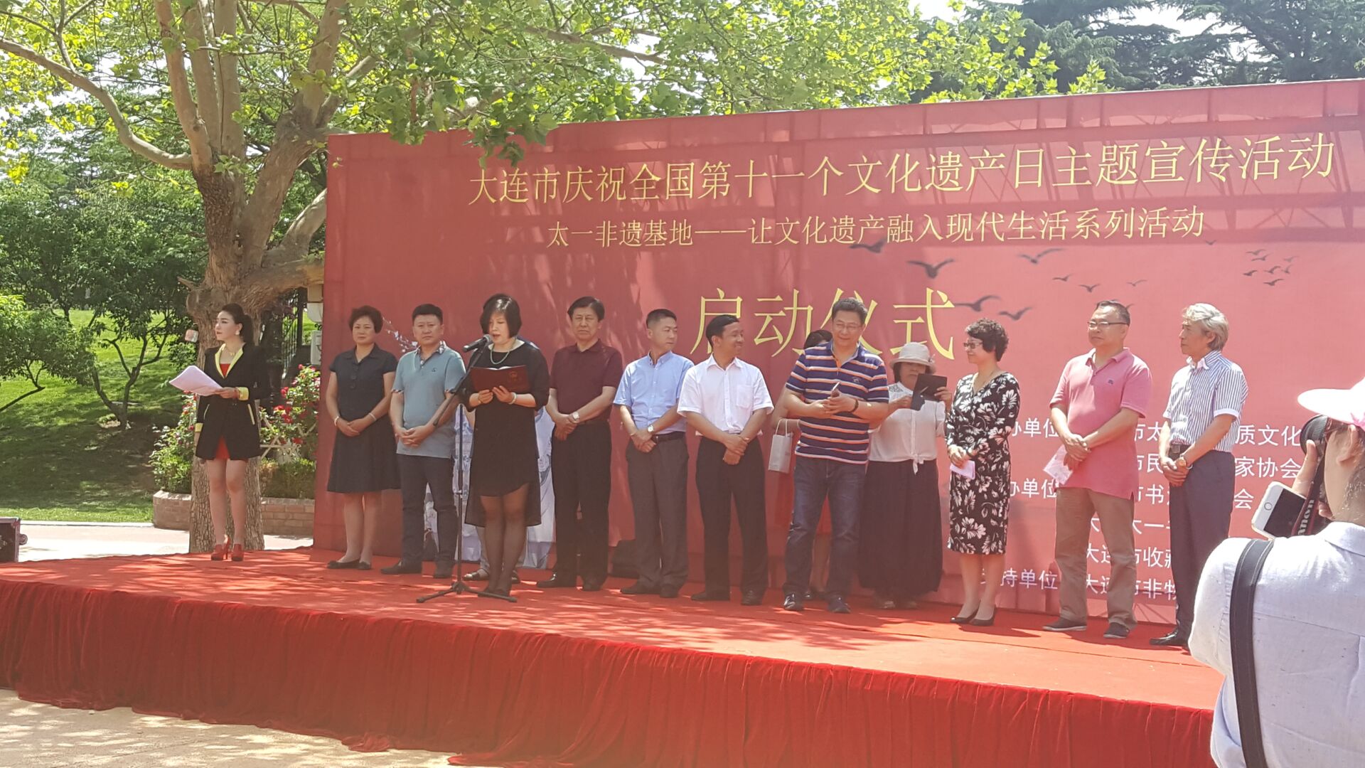 2016年6月12日,由大连市文广局主办,市群众艺术馆、市非物质文化遗产保护中心共同承办的“大连市庆祝全国第十一个文化遗产日主题宣传活动”在劳动公园拉开帷幕。市领导沈丽荣、朱程清及相关部门领导出席启动仪式,我校法学院/海警学院院长裴兆斌应邀出席,教师曲亚囡等师生参加此次活动。