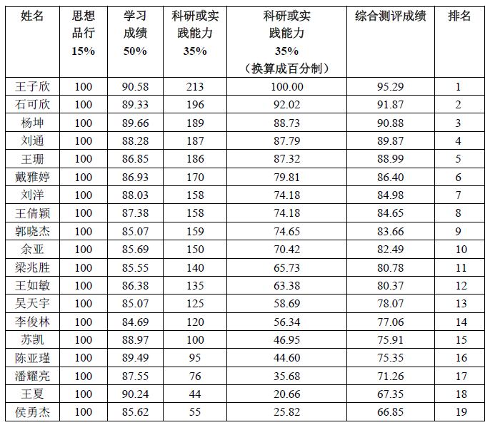 法律硕士研究生综合素质测评成绩公示