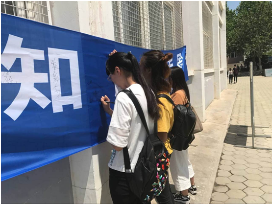 本次活动以阅读法律案例展板和集体签名两种形式进行。上午,法学院(海警学院)的学生在二教门口布置好了条幅和展板,等待同学们下课。伴随着下课铃声的响起,活动负责人宣布本次活动正式开始,随后,陆陆续续的学生来到展板前,阅读展板上展示的法律案例并进行签名。更有感兴趣的同学,与其他同学一起讨论了案例内容,交换了彼此的想法。这次活动得到了老师和同学的大力支持,展板上的经典案例更是引起了大家的兴趣,大家在条幅上签下自己的名字,表达对本次活动的支持。