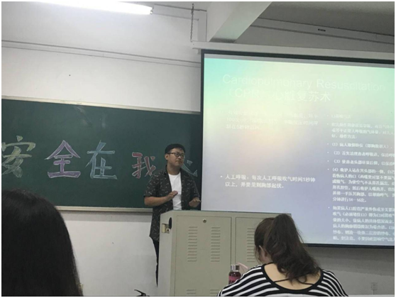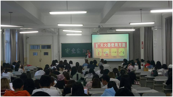 本次讲座围绕三个部分进行。第一部分由生活部干事徐冠智通过ppt形式向2016级学生普及安全知识并讲解与消防有关的基本常识和技能,并进行了灭火器的操作演示。第二部分通过发放便利贴,让全体同学对学校学院日常安全管理方面提出建议,收集好后贴在“建议墙”上。第三部分全体学生签订“安全在我心中”倡议书以及在预备好的条幅上签字。