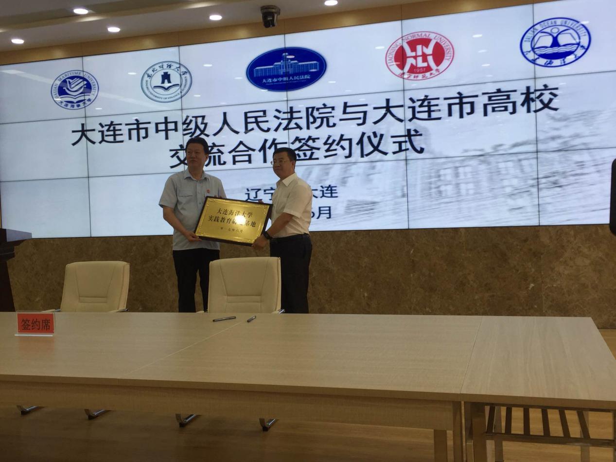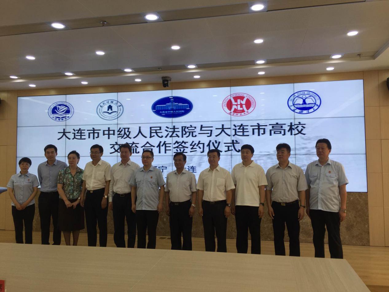 6月15日,大连市中级人民法院与大连市高校交流合作签约仪式在大连市中院进行。大连市中院党组书记、院长周焱、大连海事大学副校长单红军、东北财经大学副校长王维国、辽宁师范大学副校长岳崇兴、我校副校长张国琛、法学院院长裴兆斌应邀出席签约仪式。