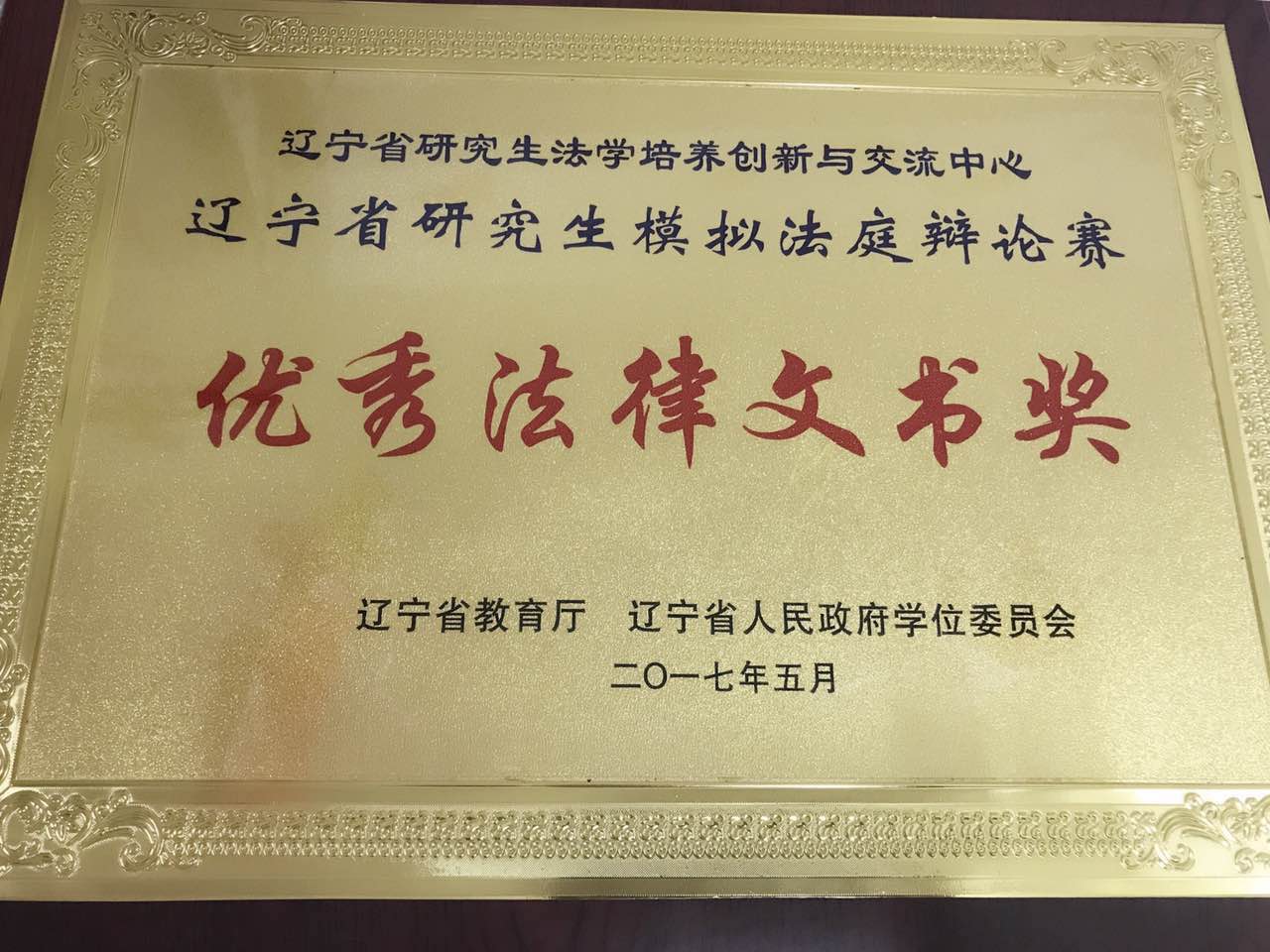 近日,辽宁省研究生模拟法庭辩论赛在辽宁沈阳顺利举行,我校法学院(海警学院)代表队参加了本次比赛,并荣获优秀法律文书奖、团队优秀奖及奖金,同时我校2016级法律硕士研究生杨斯婷荣获“优秀辩手”荣誉称号。本次辩论赛的指导教练为法学院院长裴兆斌、教师曲亚囡,领队为法学院教师吴宪国。