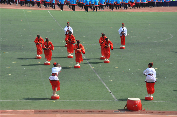 赛场上,随处可见我院健儿矫健的身影。师生齐上阵,赛场战风云。他们热情饱满、勇敢无惧;他们活力无限,永不言弃,志愿者们也忙活起来,给每一位运动员以充分的照顾和服务,努力为运动员们创造良好的运动条件和比赛环境,为运动会秩序的稳定做出了巨大的贡献。随着比赛的激烈进行,看台上的学院师生观众也深受感染、热情高涨,一句句加油呐喊,一阵阵擂鼓助威,一遍遍鼓掌摇旗,都满载着法学院一家亲的情感,使运动员们深受鼓舞,斗志昂扬。在闭幕式期间,法学院团体操队伍向全校观众展示了传统民族舞蹈,那曼妙的舞姿,整齐划一的民族服饰,仿佛让人们重温起了古代中国的盛世景象,体验到了古人豪气万丈天的视觉盛宴。