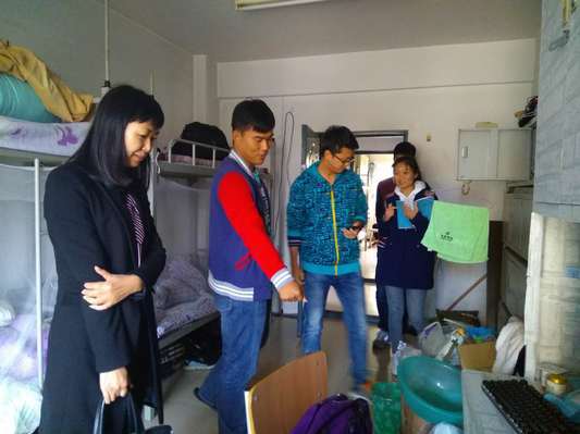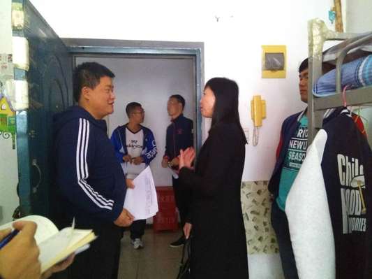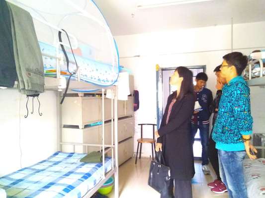 学院生活委员配合学院老师一起检查学生宿舍