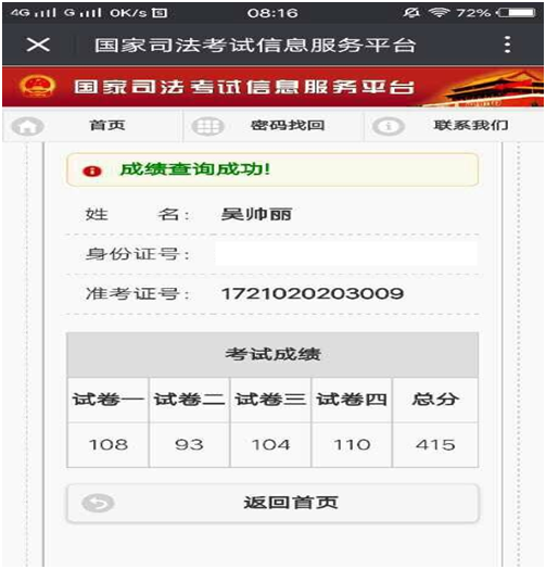 11月21日,2017年国家司法考试落下了帷幕,我院学子经过努力在此次国家司法考试中取得了优异的成绩。2014级法学专业本科生有8人,在校研究生有8人,达到国家360分的合格线,获得A证。其中,2017级法律硕士吴帅丽以415分获得我院司考最高分。