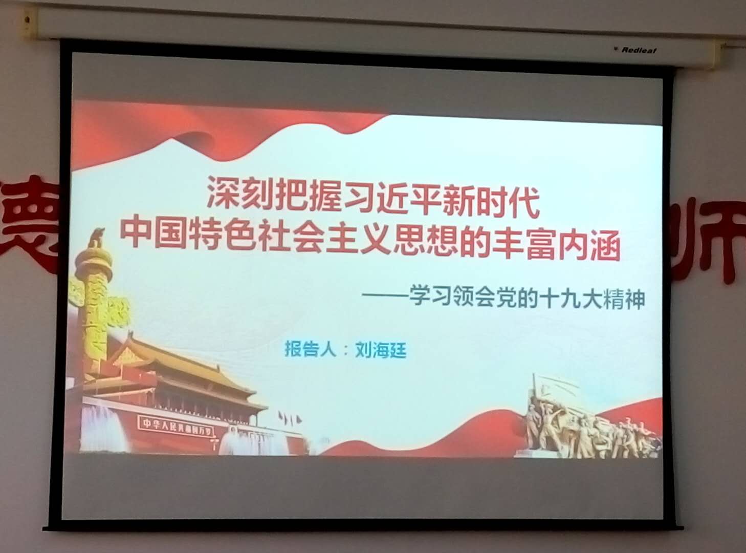 刘海廷书记为全院研究生宣讲党的十九大精神,是我院贯彻落实习近平总书记在全国高校思想政治工作会议上重要讲话精神和党的十九大精神的重要举措,有利于进一步加强和改进新形势下我院思想政治工作,有利于培养又红又专、德才兼备、全面发展的中国特色社会主义合格建设者和可靠接班人。