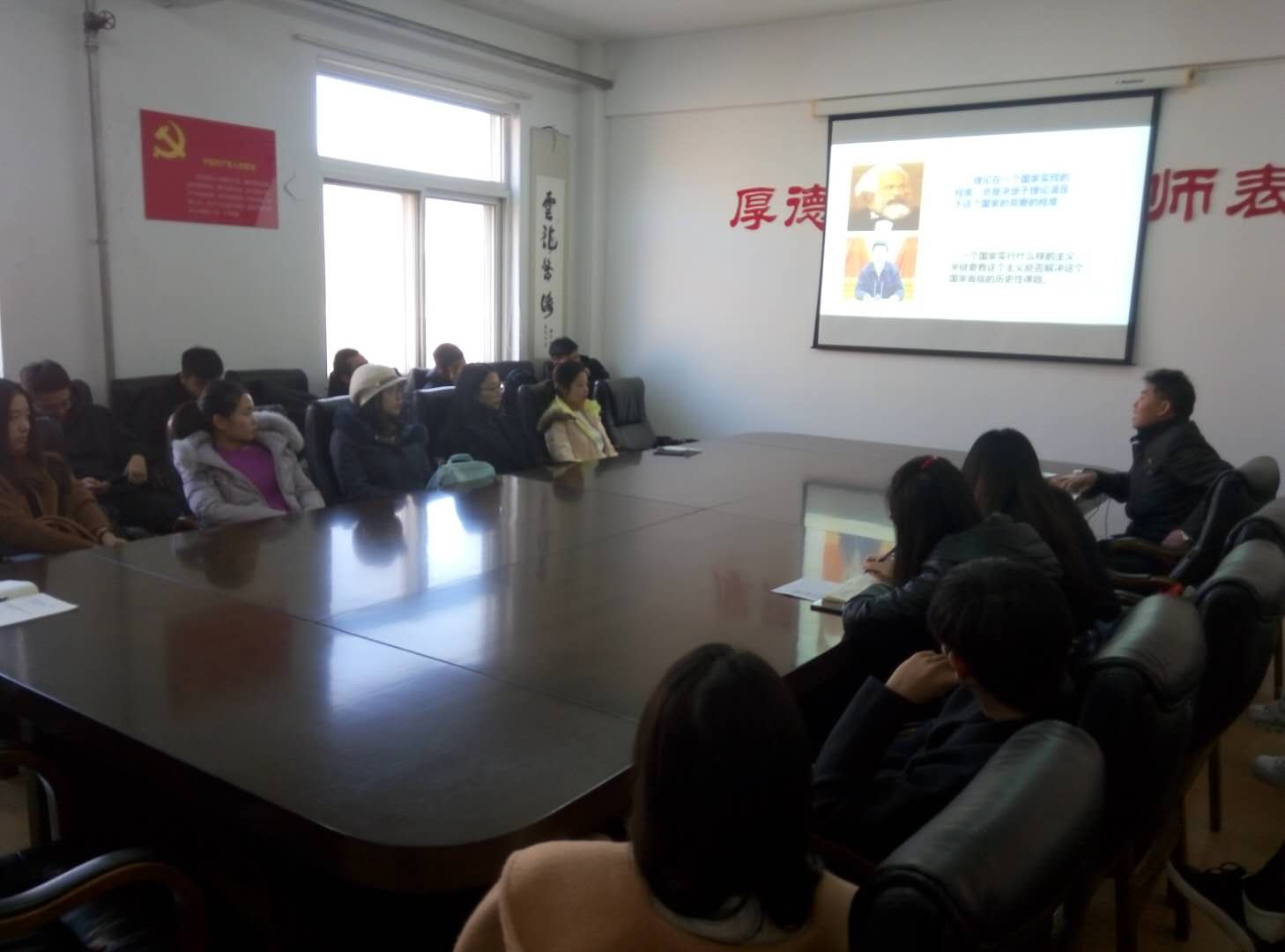 12月7日,法学院(海警学院)党总支书记刘海廷围绕着“深刻把握习近平新时代中国特色社会主义思想的丰富内涵-学习领会党的十九大精神”专题,为法学院(海警学院)全体研究生宣讲党的十九大精神。
