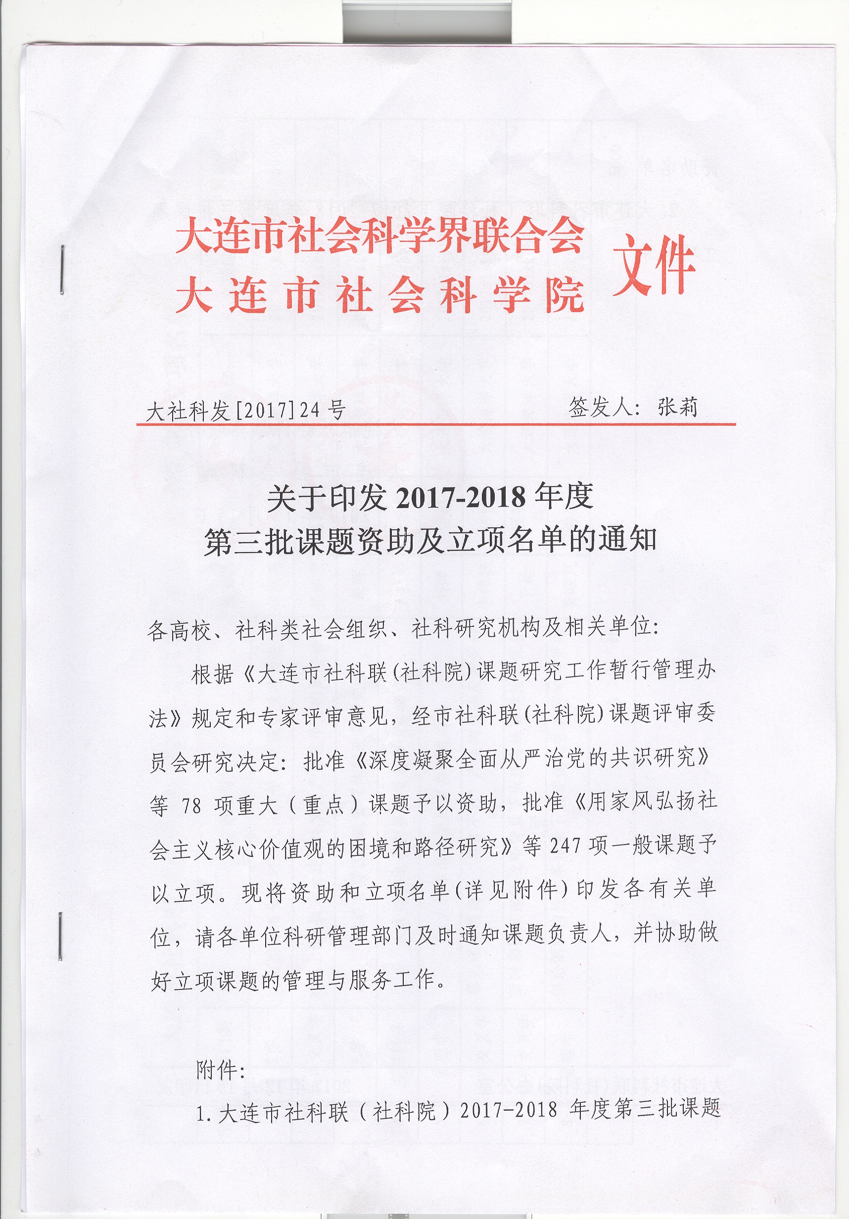 【校园喜报】我院获批多项大连市社科联2017-2018年度课题资助