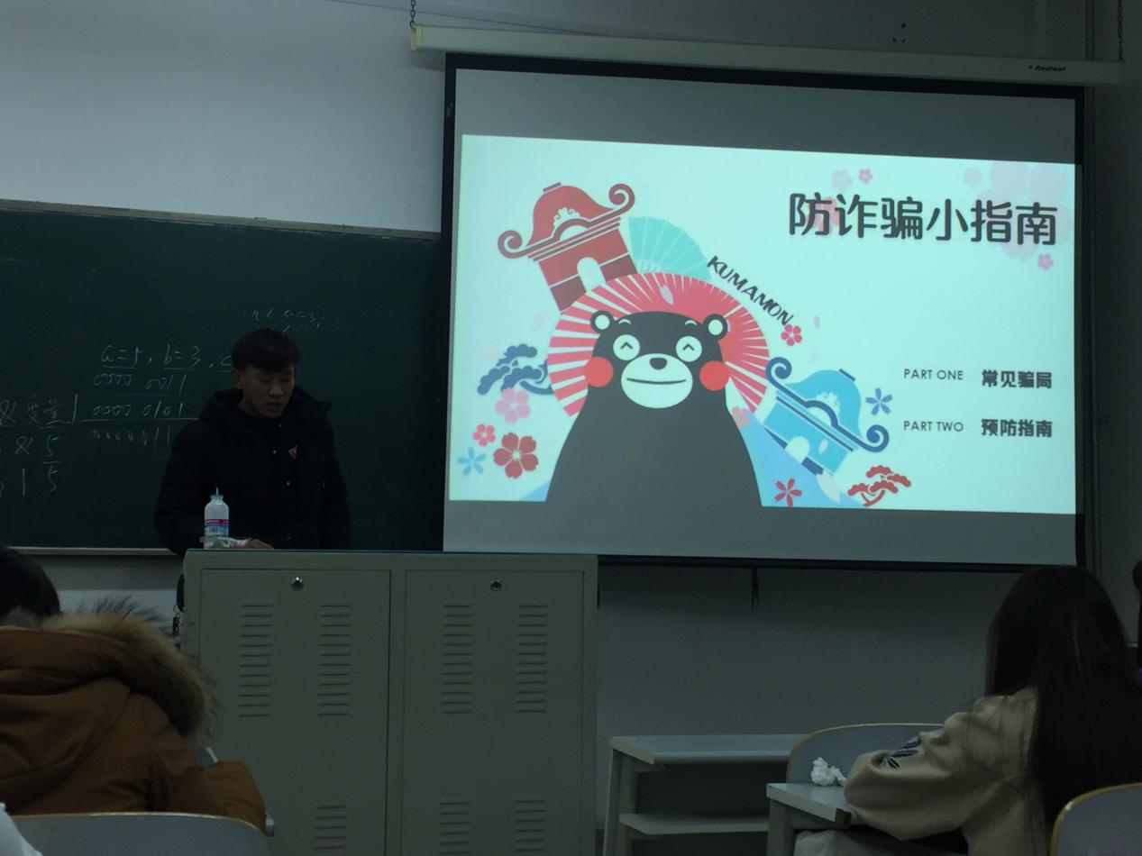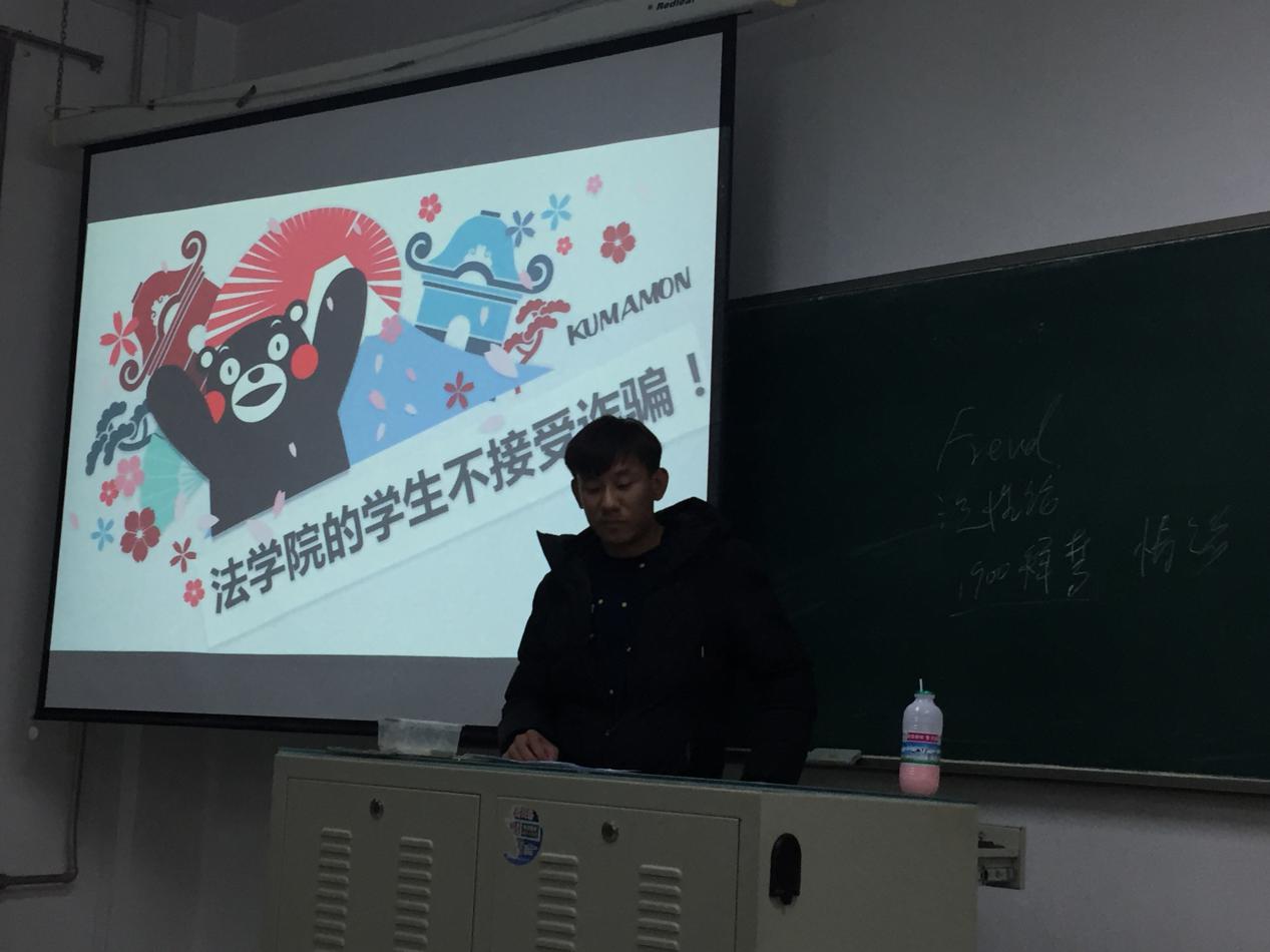 2018年3月22日,法学院(海警学院)团委学生会主办的防骗教育主题讲座在二教教室举行,由法学院(海警学院)团委学生干部张东旭主持,17级行政管理专业与人力资源管理专业全体学生参加此次讲座。作为人文社科类学院,结合学院特色,法学院(海警学院)的学生应当提高法律意识,对诈骗说不。张东旭同学对于讲座的时间把控的十分到位,语言风格幽默风趣,先是给大家看了一个被诈骗了的案例的视频,随后带着大家分析受害者被诈骗的心理活动与犯罪分子有可乘之机的犯罪原因,紧接着图文并茂的为大家展示了一系列的就在大家身边的诈骗事件并一一为大家分析,例如考试替考诈骗、兼职诈骗、谎借手机诈骗、冒充亲朋好友或政府工作人员电话诈骗、校园贷等等。最后,张东旭同学结合相关的法律法规与以往出现的一些真实发生在大学生身边的案例,警示大家,提高警惕,警钟长鸣,远离诈骗。