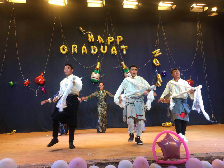 晚会以橘子乐队的三首劲歌作为开场,让人看得热血沸腾,有热歌就有劲舞,之后舞蹈团展示了精湛的舞技。藏族同学的舞蹈《拉孜堆谐》更是别有风情,极具特色。晚会过程中还穿插了传话游戏的互动环节和五球联赛、寝室文化节的颁奖仪式。最后,在《毕业季·致青春》 的诗朗诵中,此次晚会落下帷幕。
