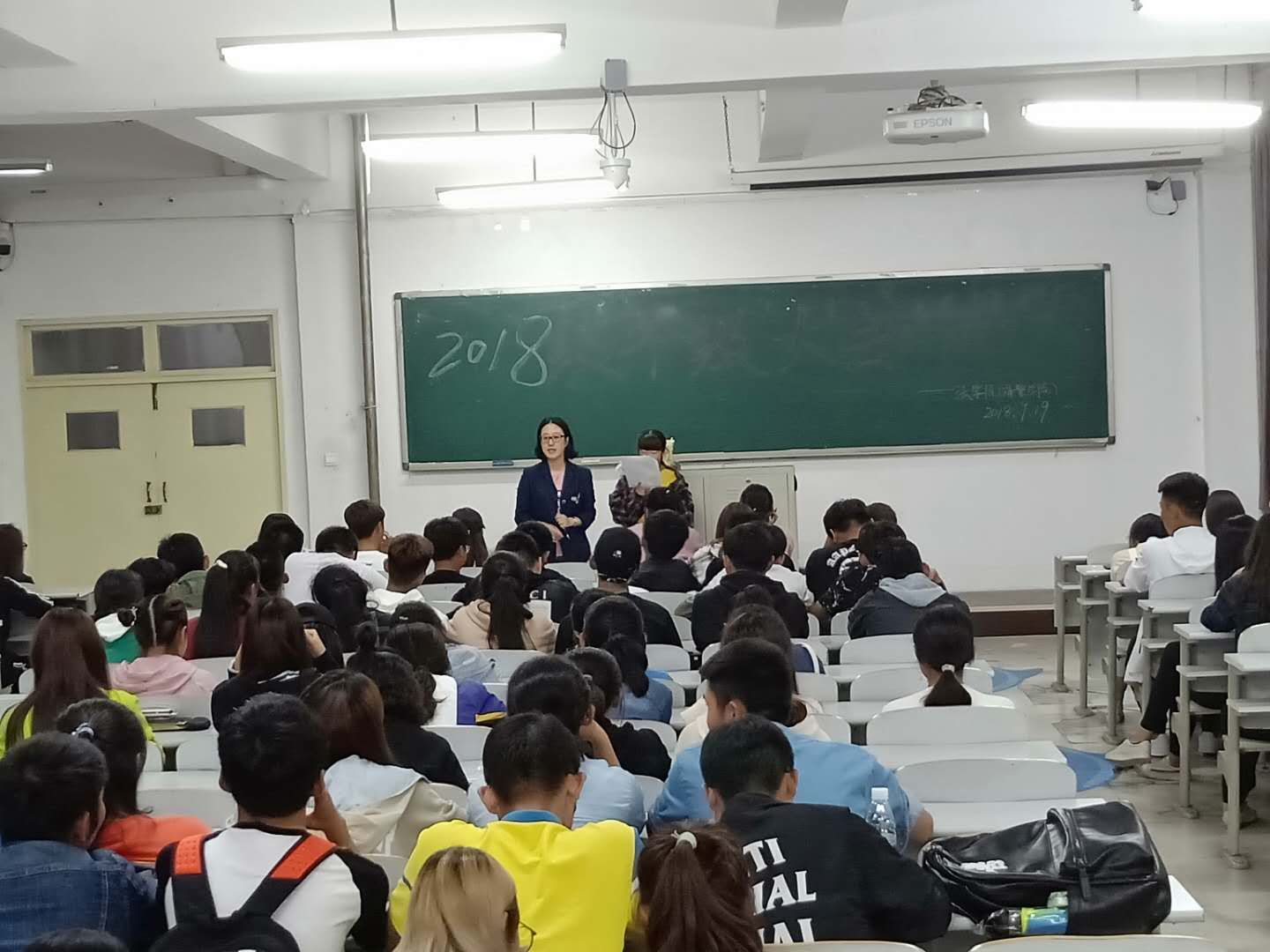 会上,郭老师就2018级新生对于学校管理,日程安排及学生学习问题做出了相应的解读与要求。郭老师强调当代大学生应该注意学校纪律,注重自身规范,并告知我们应注意的相关事宜。郭老师还就学校学生转专业和出国留学等问题进行了相应的解答。郭老师特别强调注重学习,注重学分,注重考风考纪问题提出要求并对新生的殷切希望。