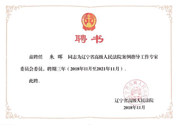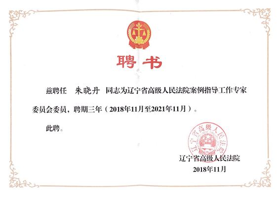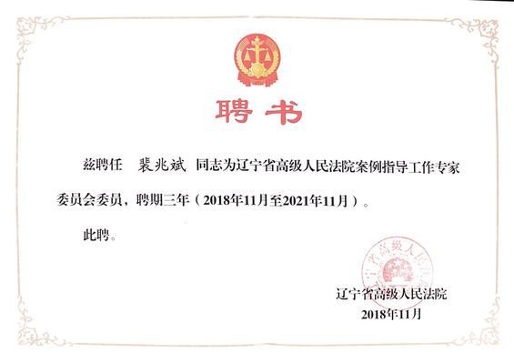 2018年12月,辽宁省高级人民法院举行案例指导工作专家委员会聘任仪式暨专家论证会,我校法学院、海警学院裴兆斌教授、朱晖副教授、朱晓丹副教授等4名教师受聘为辽宁省高级人民法院案例指导工作专家委员会委员。