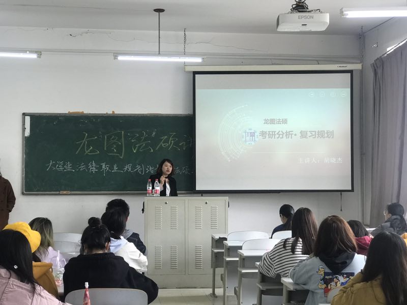2019年4月24日下午,法学院(海警学院)在渤海校区2教217教室举办了大学生法律职业规划讲座。本次讲座以“大学生法律职业规划分析及法硕法考分析”为主题,由龙图教育集团胡晓杰老师主讲,学院2017级、2018级法学专业全体学生参加了本次讲座。