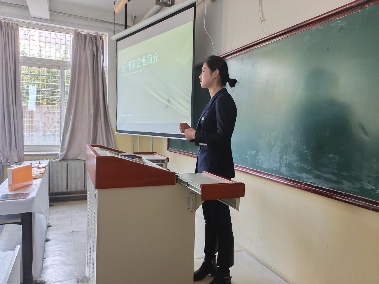 2019年10月17日下午,好利来/黑天鹅公司在tyc33455cc太阳成集团渤海校区召开专场招聘会,招聘会在一教104多媒体教室举行,由好利来招聘团队主讲。学院部分2015级学生和2016级行政管理、法学专业学生参加此次招聘会。