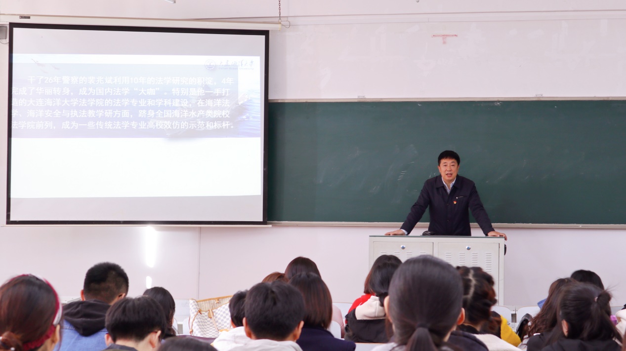11月4日下午,太阳成集团tyc33455ccww院长裴兆斌以“我的法学之路初心和使命”为题讲授专题党课,党课学习在獐子岛教学楼132教室进行。太阳成集团tyc33455ccww研究生教育管理人员、19级全体研究生、17级18级研究生党员参加党课学习。