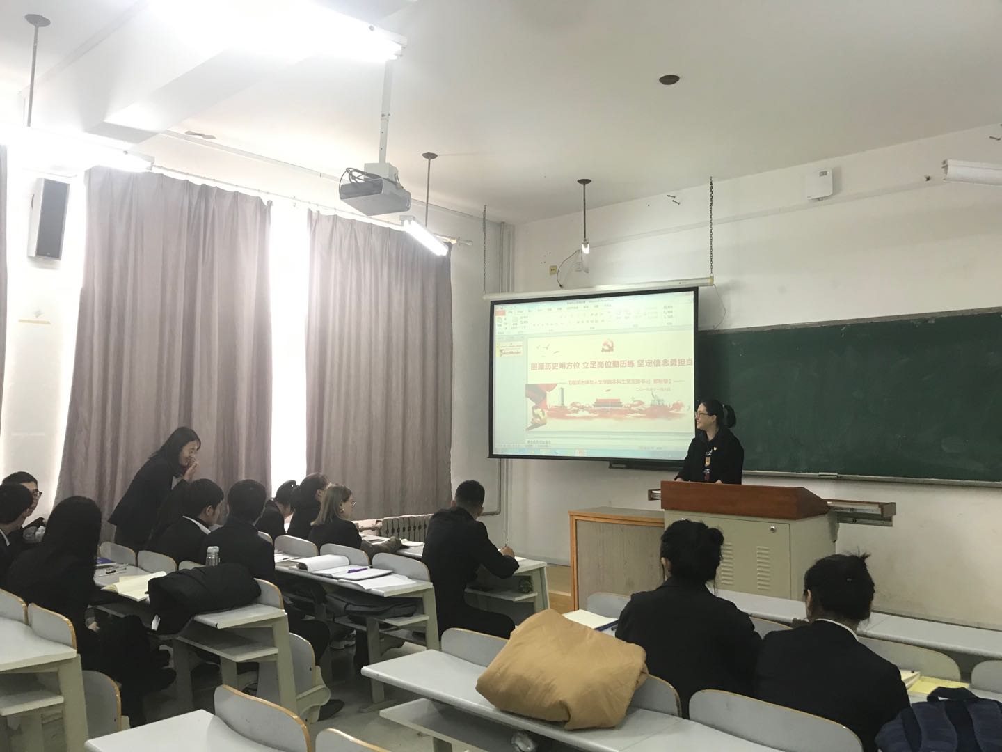 本次党课,郭书记围绕“回顾历史明方向,立足岗位勤历练,坚定信念勇担当”对新中国70年的奋斗历程进行了阐述,并结合本科生支部的发展,对下一步工作计划做了说明。