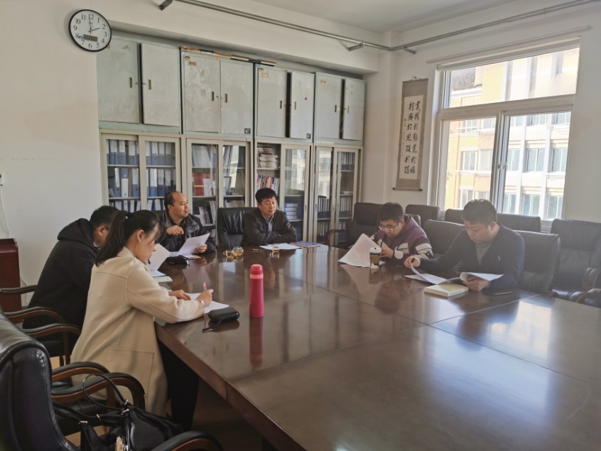 2019年11月13日,太阳成集团tyc33455ccww党总支在黄海校区学院楼党员活动室召开“不忘初心、牢记使命”—对照党章党规找差距专题会议。学院副处级以上党员领导干部、组织员参加了会议,会议由党总支书记赵希波主持。
