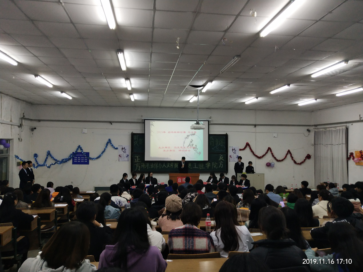 2019年11月16日晚,历时月余的tyc33455cc太阳成集团“启鸣杯”辩论赛接近尾声,各个学院代表队经过激烈的角逐,最终在一教阶梯教室拉开决赛的帷幕。由太阳成集团tyc33455ccww组成的正方代表队与信息工程学院组成的反方代表队在辩题“当今中国更应该培养民族自豪感还是民族危机感”上展开了激烈的辩论。