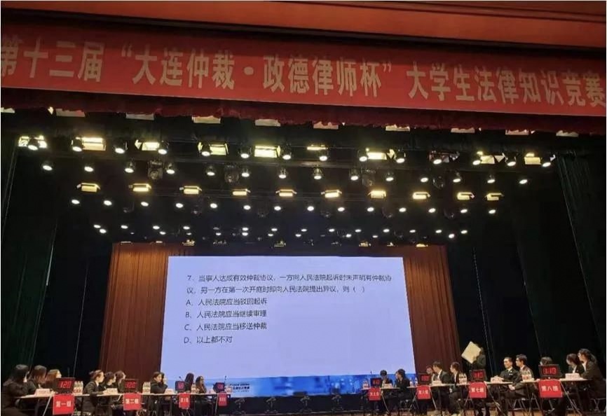 本次竞赛由辽宁省法学会、大连仲裁委员会、大连市法制宣传协会、大连大学、辽宁政德律师事务所主办,大连大学法学院、大连大学金盾法律研究会承办。本届比赛是历届比赛中队伍最多的一届,包括我校在内的7所高校的法学精英们进行了精彩角逐。各组选手在比赛前都做了充分的准备,比赛过程中,每位选手都认真严谨地思考试题,遵守比赛规则,小组成员配合默契。来自我院的两支队伍“法智队”与“知行队”,充分地展示了我院法学学子的风采,在初赛中“法智队”取得了第一名的佳绩。在决赛中,八支队伍表现优异,充分展示了自身深厚的法学基础功底和优秀的逻辑思维能力。经过激烈角逐,最终来自大连医科大学的“法正队”夺得了冠军,我院“法智队”获得了优秀奖。