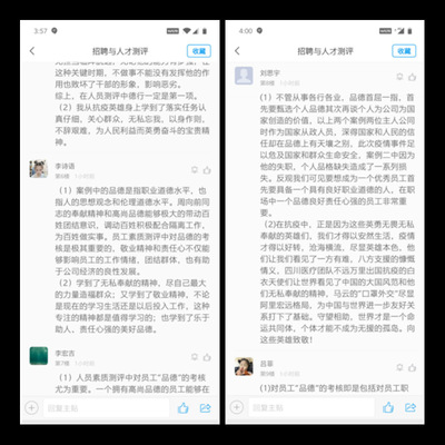 专业课融入思政内容是19版教学大纲调整的必选动作,怎么更好把“品德考核、人员素质测评和思政内容有机结合”是困扰杜鹏老师的问题,疫情给她带来了灵感,她的《招聘与人才测评》课获批我校“课程思政”教改项目,疫情期间适时调整思政融入点,结合“能岗匹配”进行了以“新冠肺炎疫情下人才素质测评的思考”为主题的在线讨论,学生们反映强烈,参与度爆棚,纷纷表示在抗疫英雄身上学到“责任担当”;同仁们也积极吸取经验,19版教学大纲中都有体现。