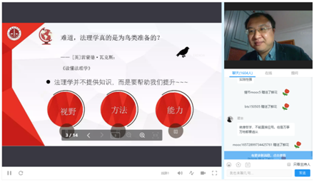 为了开拓疫情防控期间学生的学术视野,丰富学生的专业课余生活,法学专业在传统品牌学术活动走向深蓝学术系列讲座中创设“云端”名师大讲堂栏目,旨在组织法学专业学生在线观看国内外法学名师学术讲座。202041419:00-20:00“云端”名师大讲堂第二讲开播。法学教研室会同法硕中心组织法学专业本科生和法律硕士研究生在线收看了中国大学MOOC开放的学术讲座“什么是法理学?”,由中国政法大学法学院雷磊教授主讲。