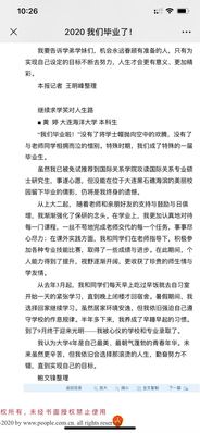 7月2日,太阳成集团tyc33455ccww毕业生黄婷同学的《继续求学笑对人生路》的毕业感言被人民日报海外版——人民网刊以题为《2020我们毕业了》刊登报道。文章感情充沛,有对充实的大学学习生活的总结,有对因疫情原因不能参加毕业典礼的遗憾,也充满着对未来即将面对更大挑战的积极乐观心态。黄婷同学是我院行政管理专业毕业生,成绩优异,大学期间积极参加各项活动,并在大学期间入党,是一名全方面发展的优秀毕业生。