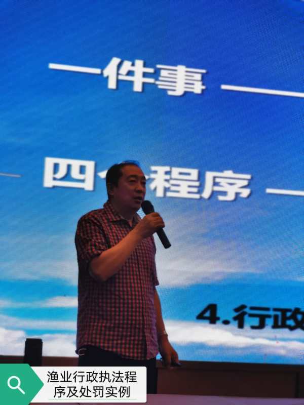 裴兆斌教授首先从渔政执法主体讲起。而后,详细地讲解了办理渔业行政案件程序及渔业行政执法与刑事司法的衔接。结合案例,对渔业行政案件在立案、调查取证、告知、告知听证、决定、送达、执行、涉渔犯罪案件立案追诉标准、移送程序、法律责任等方面存在的问题一一进行了分析。