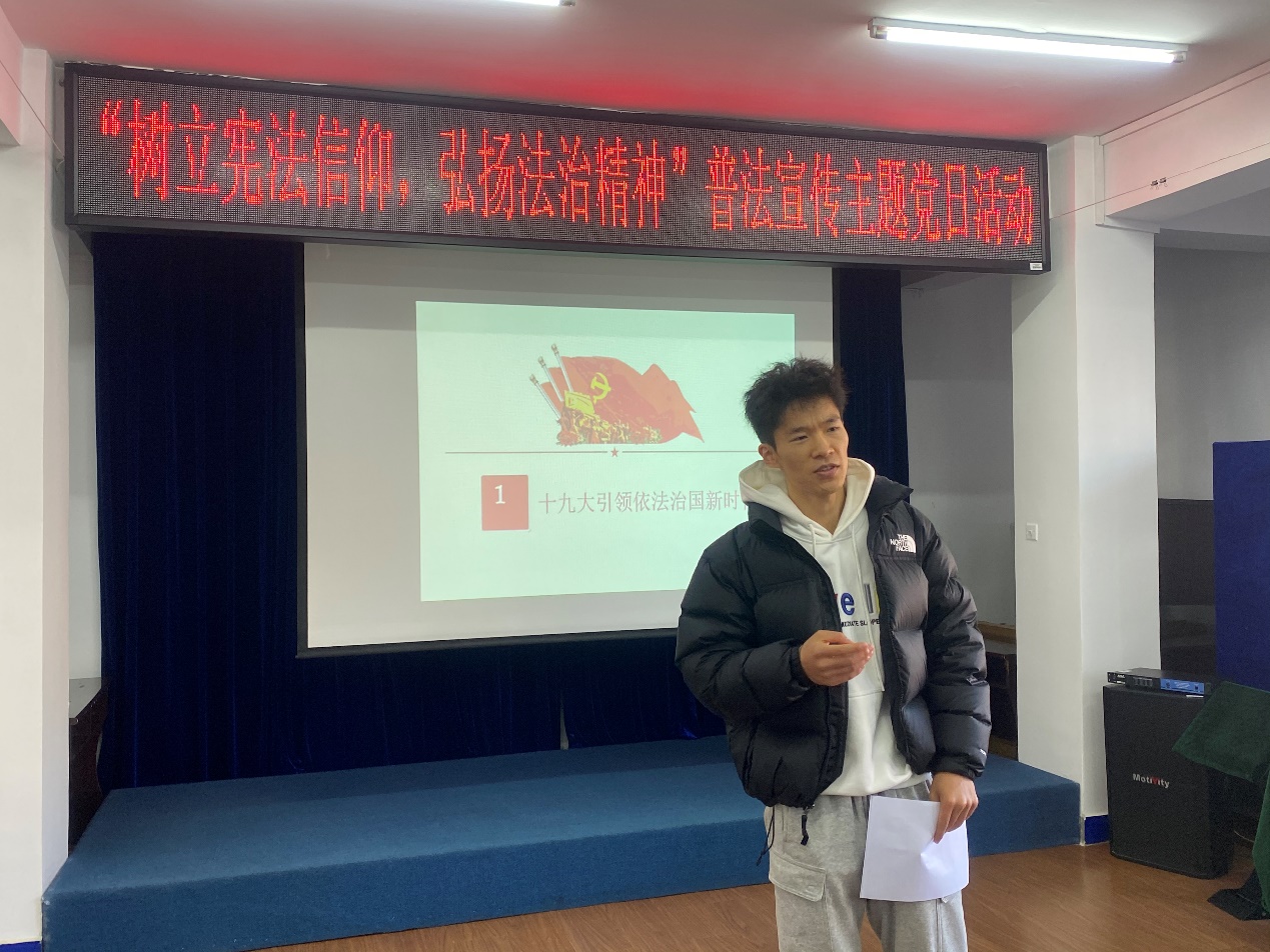2020级研究生武家辉从宪法的历史、性质、宪法与我们的关系进行了讲解。宪法是我国的根本法,树立宪法意识,了解宪法给予公民的权利与义务,对每一位公民维护自己合法权利都是十分重要的。