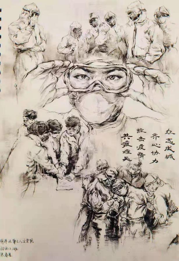图 学生围绕抗击疫情,结合专业课程完成的设计作品