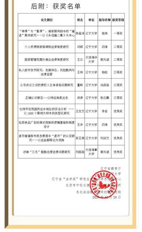 2020年12月26日,由辽宁省教育厅主办、北京市中伦文德(沈阳)律师事务所协办、辽宁省“法学类”研究生创新与学术交流中心承办的辽宁省“中伦文德杯”第二届“辽宁省卓越法治人才研究生创新论文大赛”在沈阳举行。