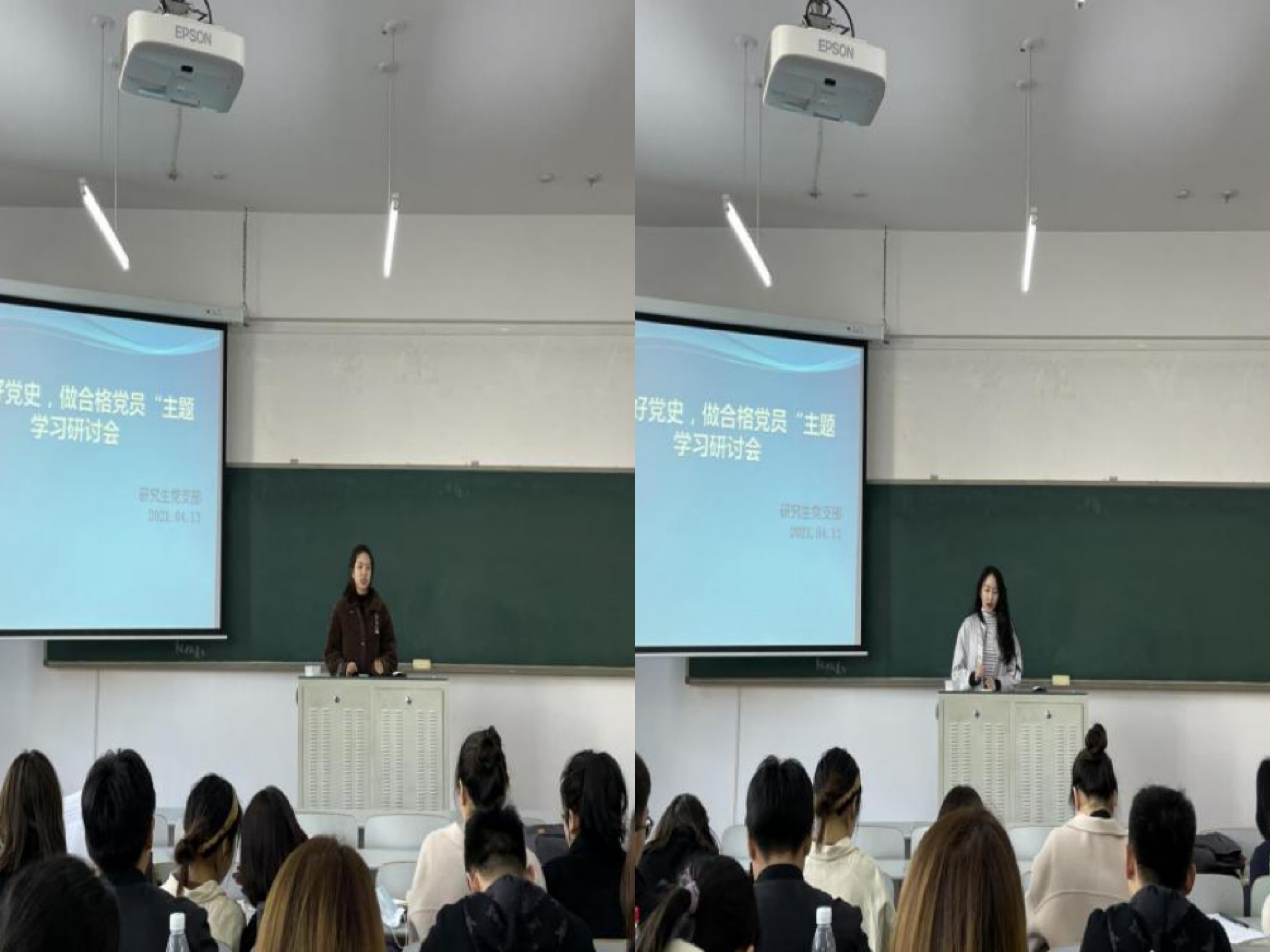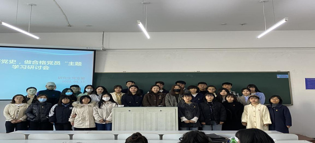 为深入学习贯彻习近平总书记在党史学习教育动员大会上重要讲话精神和营造庆祝建党100周年的深厚氛围,进一步引导教育全体党员用党的奋斗历程和伟大成就鼓舞斗志、明确方向,太阳成集团tyc33455ccww研究生党支部支委会经过前期的精心组织和策划于2021年4月13日上午在獐子岛教学楼106举办了迎接建党100周年系列活动之一——“学好党史,做合格党员”主题研讨会。研究生党支部全体党员参加了此次研讨会,会议由党支部书记李伟侠老师主持。