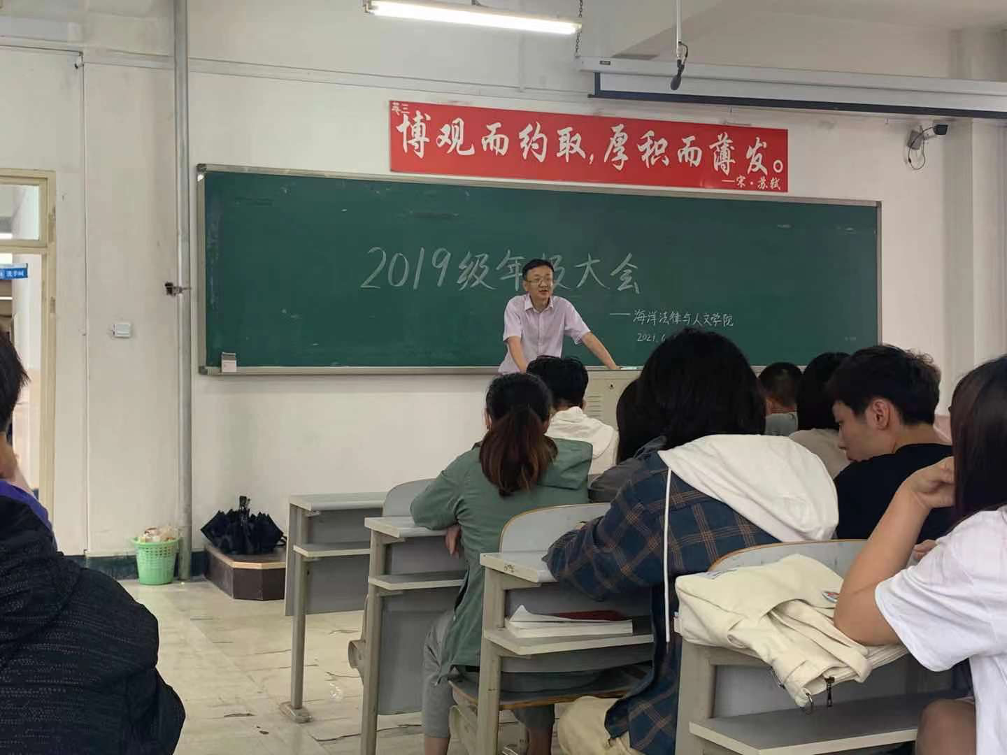 他指出,学生的第一要务是学习,临近期末考试,大家务必全力以赴做好复习,严肃认真对待期末考试。同时,要牢固树立诚信考试意识,绝不允许出现考试作弊等违纪行为。即将步入大三,他对全体同学进行了职业生涯规划教育,希望有考研意向的同学尽早确定目标定位,做好复习规划。此外,他还介绍了最新的就业创业政策以及志愿服务项目,教育引导同学们树立“先就业,再择业”的就业观念。临近假期,他强调了假期安全问题,尤其是人身、交通、财产安全等方面的问题。他要求,全体学生假期期间务必保持通讯工具畅通,严格落实疫情防控相关举措,确保安全稳定。