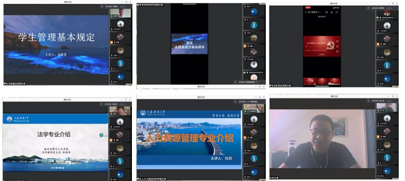 会上,2021级新生辅导员宋敬星、教学秘书于小帆、团委书记兼办公室主任郭昕黎分别就学生管理规定、教学管理相关制度和入党基本程序等几个方面为同学们进行了简要介绍。随后法学专业教研室主任朱晓丹、人力资源管理教研室主任杜鹏、视觉传达设计教研室主任张仕春3位老师分别从专业概况、发展前景、职业生涯规划等几个方面进行了简述,使同学们对所学专业有了初步的了解。