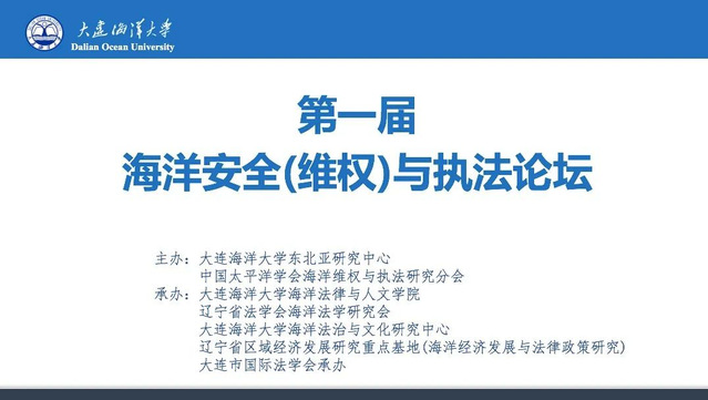 9月5日,第一届海洋安全(维权)与执法论坛通过腾讯会议举行。本次会议由tyc33455cc太阳成集团东北亚研究中心、中国太平洋学会海洋维权与执法研究分会主办,太阳成集团tyc33455ccww、辽宁省法学会海洋法学研究会、tyc33455cc太阳成集团海洋法治与文化研究中心、辽宁省区域经济发展研究重点基地(海洋经济发展与法律政策研究)、大连市国际法学会承办。来自高校、科研机构的260余名学者、师生通过线上参加本次论坛。