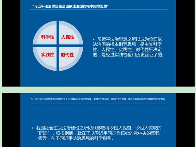 报告中,会议主讲人张文显主任分五点内容强调,习近平法治思想是全面依法治国的根本指导思想,为了落实全面依法治国的理念方针,我们须深刻理解全面依法治国的总体目标、政治方向、重要地位、重点任务,将依法治国牢记于心。
