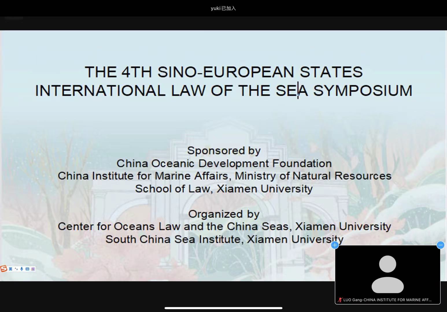 2021年10月14日-15日,由中国海洋发展基金会、自然资源部海洋发展战略研究所和厦门大学法学院主办,厦门大学南海研究院和厦门大学海洋法与中国东南海疆研究中心承办的“第四届中欧国际海洋法研讨会”成功举行。来自中国、德国、意大利、英国、法国、南非、瑞典、比利时、瑞士等国家以及非洲、东盟和拉丁美洲等地区的专家学者共200余人参加会议。我院2019级、2020级王颖等部分研究生线上参加了此次会议。