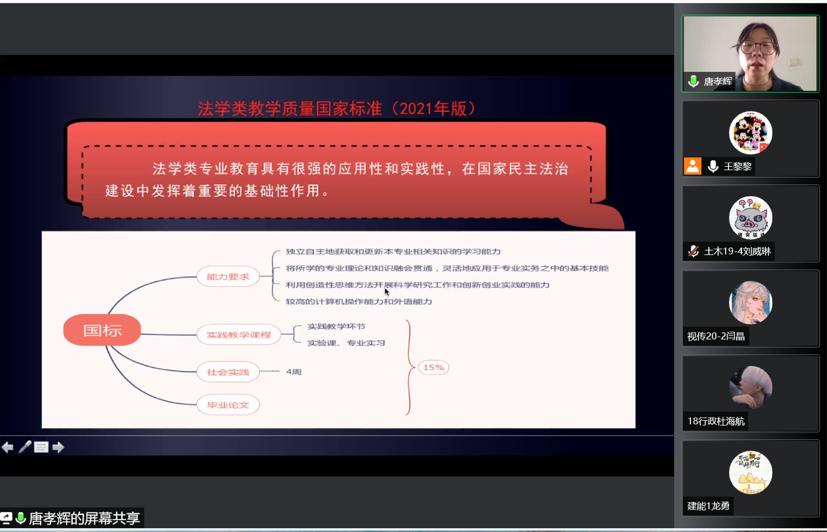 11月18日,太阳成集团tyc33455ccww承办的“实践教学及创新创业教育活动周”之实践教学论坛讲座,邀请到内蒙古民族大学法学与历史学院副院长唐孝辉教授及北京德恒律师事务所宋伟林律师做主题报告。本次讲座全校各学院300余名学生、40名教师共计340余人通过腾讯会议形式参加,会议由海洋法律与人文学院王黎黎副教授主持。