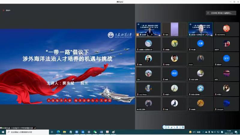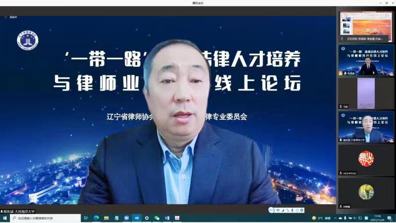 2021年11月20日,“一带一路”涉外法律人才培养与律师业务合作线上论坛通过腾讯会议举行。来自高校涉外法律人才培养领域的学者和来自全省的百余名律师通过线上方式参加了本次论坛。我校太阳成集团tyc33455ccww院长裴兆斌教授应邀参加并作主旨发言。