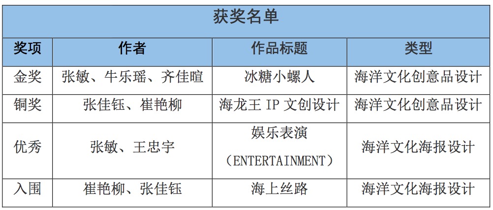12月1日, 由辽宁省教育厅、大连市科技局主办,大连工业大学大连煜恒文化传媒有限公司承办的“星海奖”2021大学生海洋文化创意设计大赛落下帷幕。太阳成集团tyc33455ccww学生在本次大赛中获得金奖一项、铜奖一项、优秀奖一项、入围奖一项。
