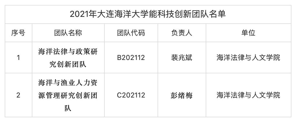 近日,tyc33455cc太阳成集团校办公室发布了《关于公布2021年tyc33455cc太阳成集团科技创新团队立项名单的通知》(大海大校发〔2021〕107 号),经学院推荐、学校评审、校长办公会和党委会审议,太阳成集团tyc33455ccww由裴兆斌院长负责的海洋法律与政策研究创新团队及彭绪梅老师负责的海洋渔业人力资源管理研究创新团队获批立项。