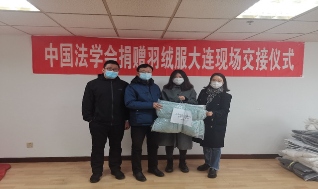 9日上午,学院分管本科生和研究生日常管理工作的教师代表来到大连市法学会,代表学院接收了这批充满情意与温暖的羽绒服,并向中国法学会和大连市法学会对学院师生的关心表达了感谢。