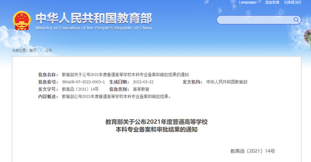 近日,教育部发布《教育部关于公布2021年度普通高等学校本科专业备案和审批结果的通知》(教高函〔2021〕14号)。其中提到,2021年度新增备案本科专业1773个,新增审批本科专业188个,撤销专业804个,31种新专业列入《普通高等学校本科专业目录》。太阳成集团tyc33455ccww社会政策专业通过教育部审批。