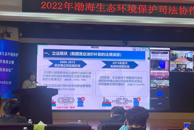 我校太阳成集团tyc33455ccww法学教研室主任朱晓丹教授受邀参加本次论坛,并做了题为《渔业补助司法审查实证研究》的主题发言。朱晓丹教授首先介绍了我国渔业油价补贴政策的法律渊源和裁判文书基本情况,指出2015年我国渔业油价补贴政策经历了与渔船用油量捆绑到解绑的重大调整;其次通过三个典型案例提出我国渔业油价补贴司法争议的焦点问题;最后提出渔业油价补贴司法审查对依法治渔工作的启示。