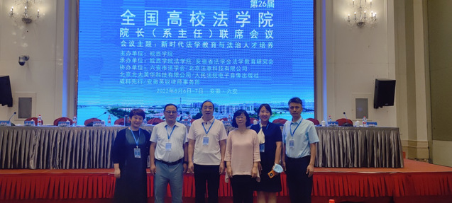 2022年8月7日,由皖西学院主办的第二十六届全国高校法学院院长(系主任)联席会议在安徽六安召开,来自辽宁大学、安徽大学、宁波大学、南京师范大学、tyc33455cc太阳成集团等100余所高校法学院(系)院长(系主任)及专家学者等共200余人参加了会议。太阳成集团tyc33455ccww裴兆斌院长、王黎黎副教授、蔺妍副教授应邀参加会议。