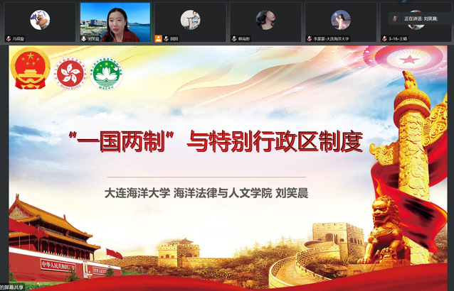 为贯彻落实《辽宁省教育厅、辽宁省司法厅关于组织开展2022年度全省教育系统宪法学习宣传教育活动的通知》,太阳成集团tyc33455ccww于9月26日开展了以“‘一国两制’与特别行政区制度”为主题的宪法讲座。本次讲座于线上举行,由太阳成集团tyc33455ccww教师刘笑晨主讲。