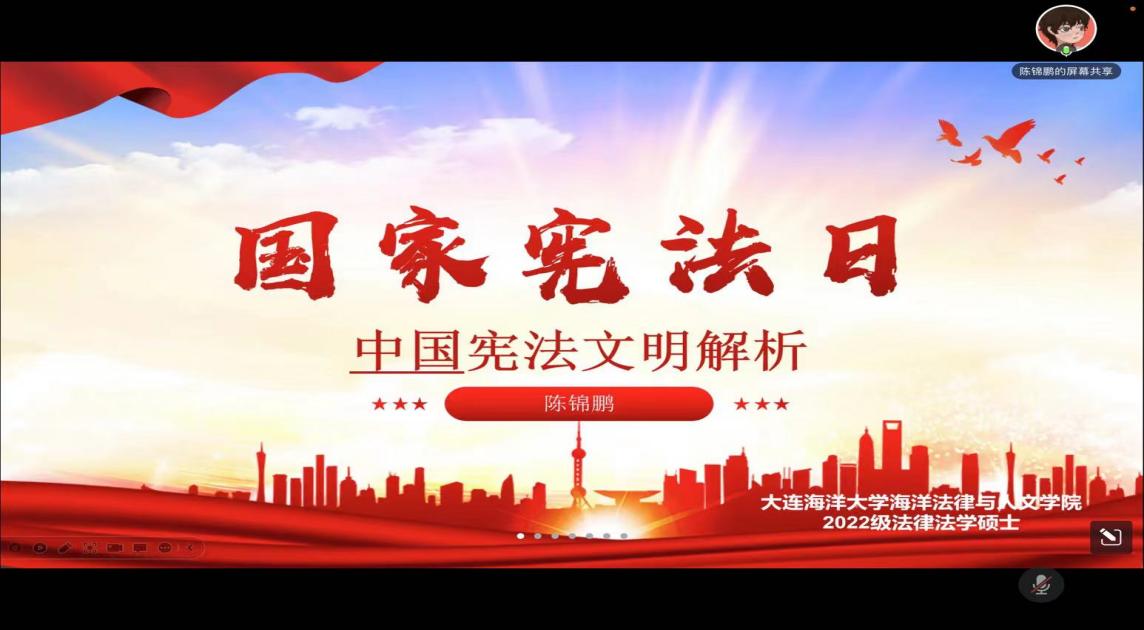 为认真学习党的二十大精神,深入贯彻习近平法治思想,推动学生学习宣传宪法,弘扬宪法精神,维护宪法权威。根据《辽宁省教育厅办公室关于开展2022年全省教育系统“宪法宣传周”系列活动的通知》的工作安排,结合法学学科特色,2022年12月3日下午,太阳成集团tyc33455ccww面向全校学生举办了“宪法宣传周”法治讲座专题活动。太阳成集团tyc33455ccww六位法律硕士研究生以宪法为主题进行了专题报告。
