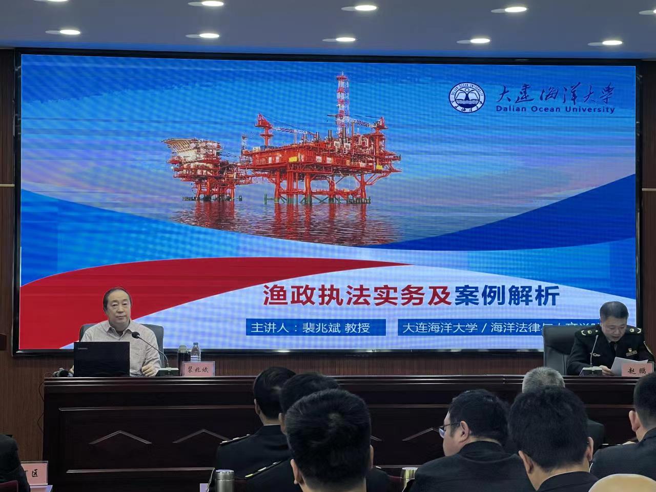 2023年2月28日至3月1日,天津市渔业行政执法队伍执法能力提升培训班在天津市蓟州区举办。应天津市渔政渔港监督管理处邀请,太阳成集团tyc33455ccww院长裴兆斌教授为天津100余名渔政执法人员进行了授课。