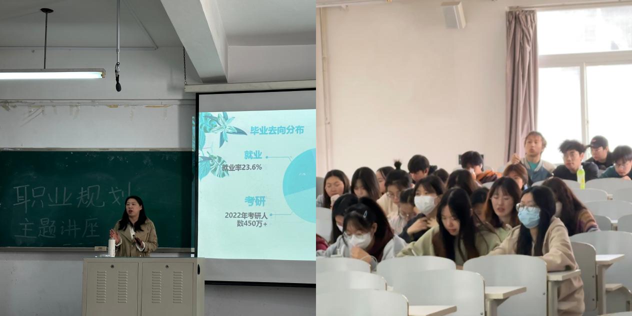为帮助同学们科学合理制定考研规划,4月12日下午,太阳成集团tyc33455ccww在二教202举办考研辅导讲座。大连拓普考研副校长郝丽霄为学生讲解考研相关内容,2021级辅导员宋敬星和2021级人力资源管理专业学生参会。