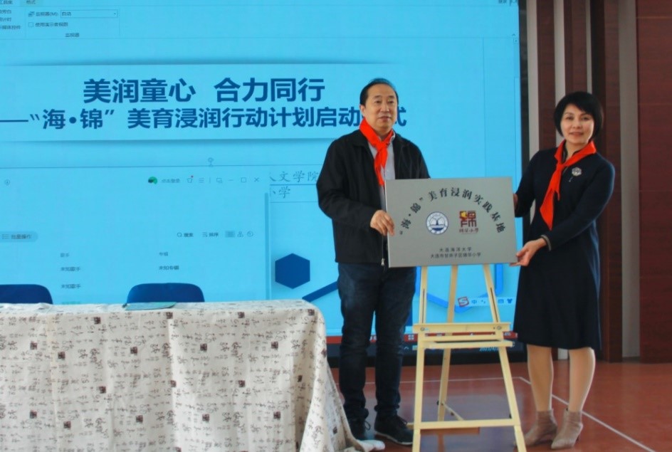 仪式上,裴兆斌院长和郝梅校长共同为“海·锦”美育浸润实践基地揭牌。