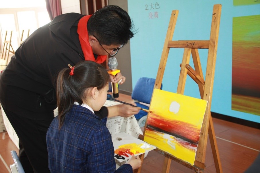 视觉传达设计教研室主任张仕春及教学团队和锦华小学的学生共同创作了绘画作品。
